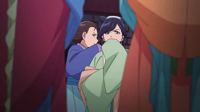 It didn’t feature my favorite non-Maomao cast member (her father, Lakan). But apart from that this premiere pretty much checked all the boxes. No beats were missed or steps lost – the mojo is still working. It’s mostly a slice of life episode, with no mystery. But that’s fine, as the mysteries were rarely up to the same standard as the rest of the writing. Lingli, daughter of Gyoukuyou, is the biggest new presence (two-legged presence, anyway) in this premiere. Lingli is now a toddler whose wanderlust has outstripped the confines of her quarters, and her mother wants her to branch out into the world (the tiny, cloistered portion in which these people live, anyway).