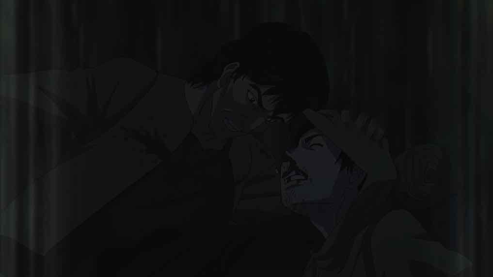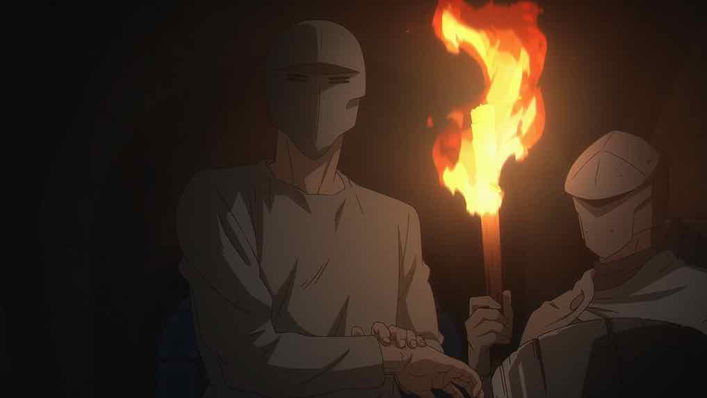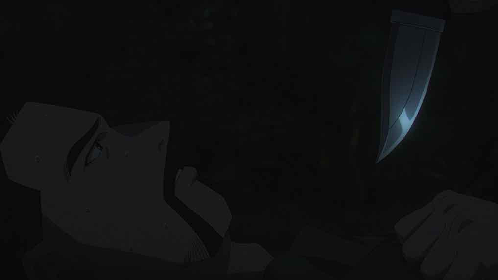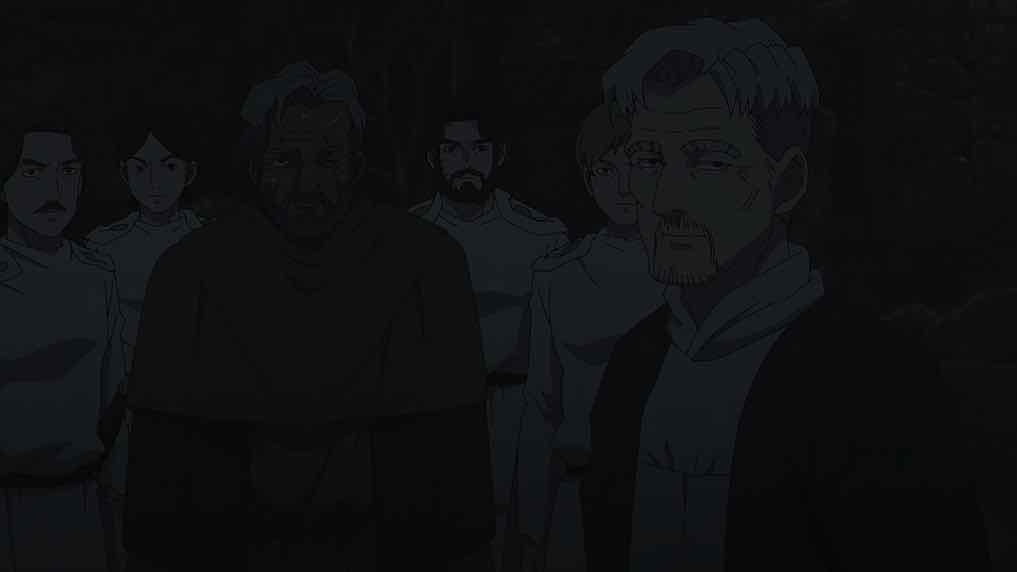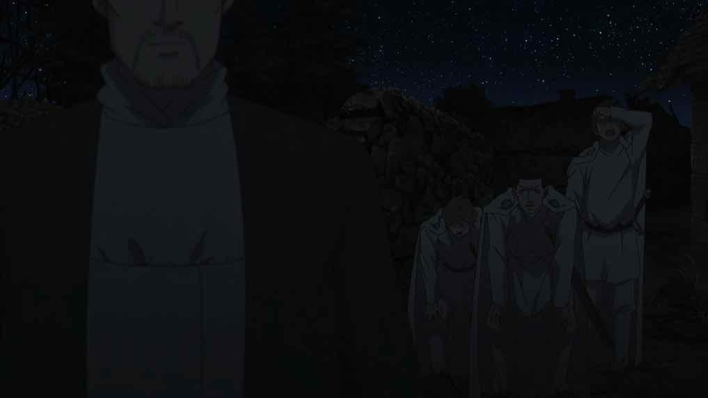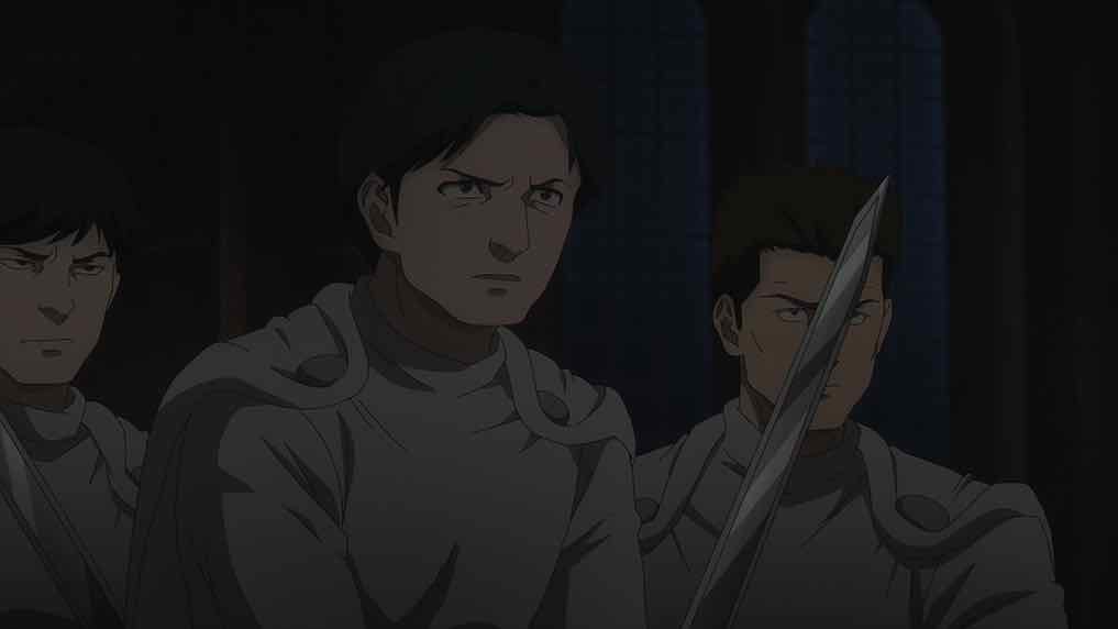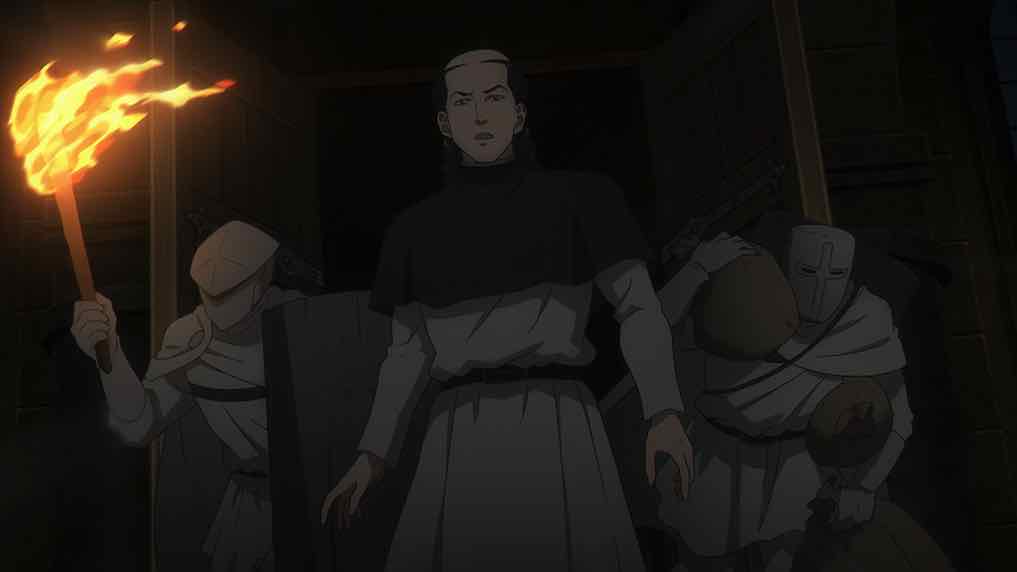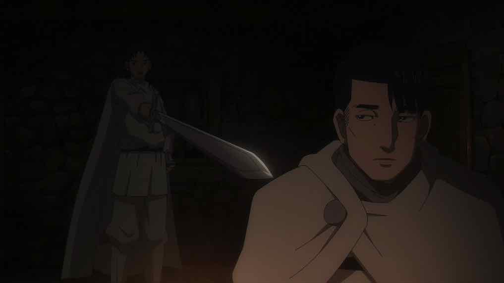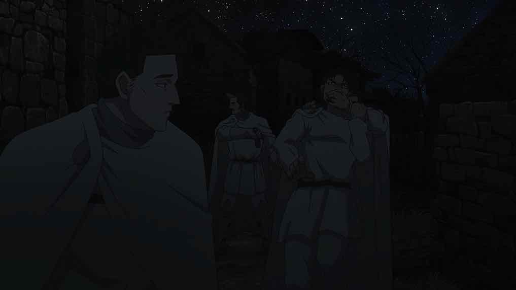 There’s also a backwards timeskip here, as we jump back again to 25 years earlier. But not as far as I can tell to anyone we know. A family of three is fleeing a village the father says has gone mad – possibly one of those peasant revolts – when his younger brother intercepts them on the way out of town. He espouses some politically radical but perfectly valid positions, and when Aniki refuses to stipulate to them, proceeds to slash him and then go after the son. His mother saves the boy (presumably at the cost of her own life), and it’s clear that he survives and becomes important in the “present”. But I don’t get the sense that he’s Schmitt, so details on that are still to come.