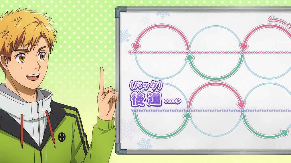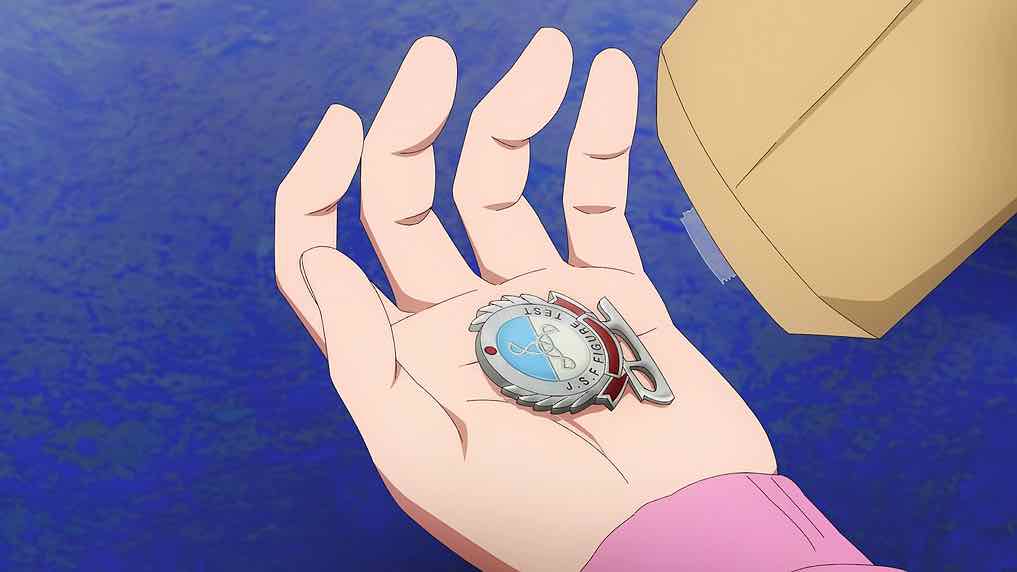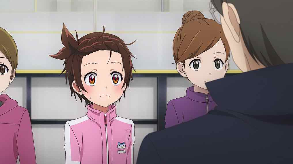 This week’s theme is a badge test. It’s kind of a level check for skater kids, and part of the required progression for recognition as a competitor. I do question why Inori’s mom seemed unfamiliar with this given what we know about her older daughter, but whatever on that. Inori is a beginner so her badge is “prelim”. Basically she needs to be able to push off and skate on one foot forwards and backwards, crosses, that sort of thing. It’s the kind of stuff most serious kids are doing at five or six but that’s all the more reason why Inori doesn’t have the luxury of waiting for the next one a few months down the road.