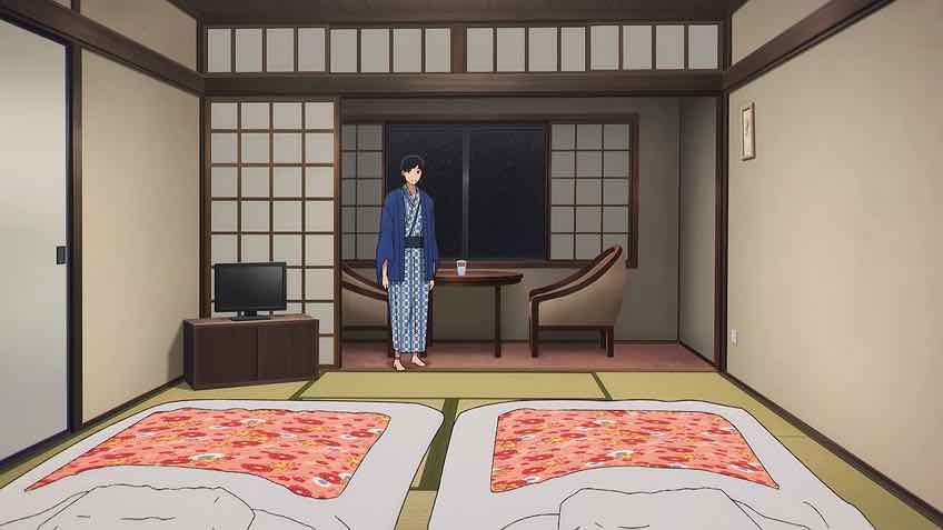 I’m a sucker for romances between two really nice kids, no denying that. But this scene at the inn is just so good – the video call, the apologies, his sleeping in a chair. Somehow what should be tired and played comes off as fresh and charming. That it hits the reset button on their relationship can’t be denied, especially her retraction of her assertion that they should maintain their distance. And Hina has unwittingly given Taiki a sense of urgency to comprehend just what his relationship with Chinatsu is – and what it can become. For both Taiki and Chinatsu the answer to those questions surely looks very different than it did before they boarded that train.