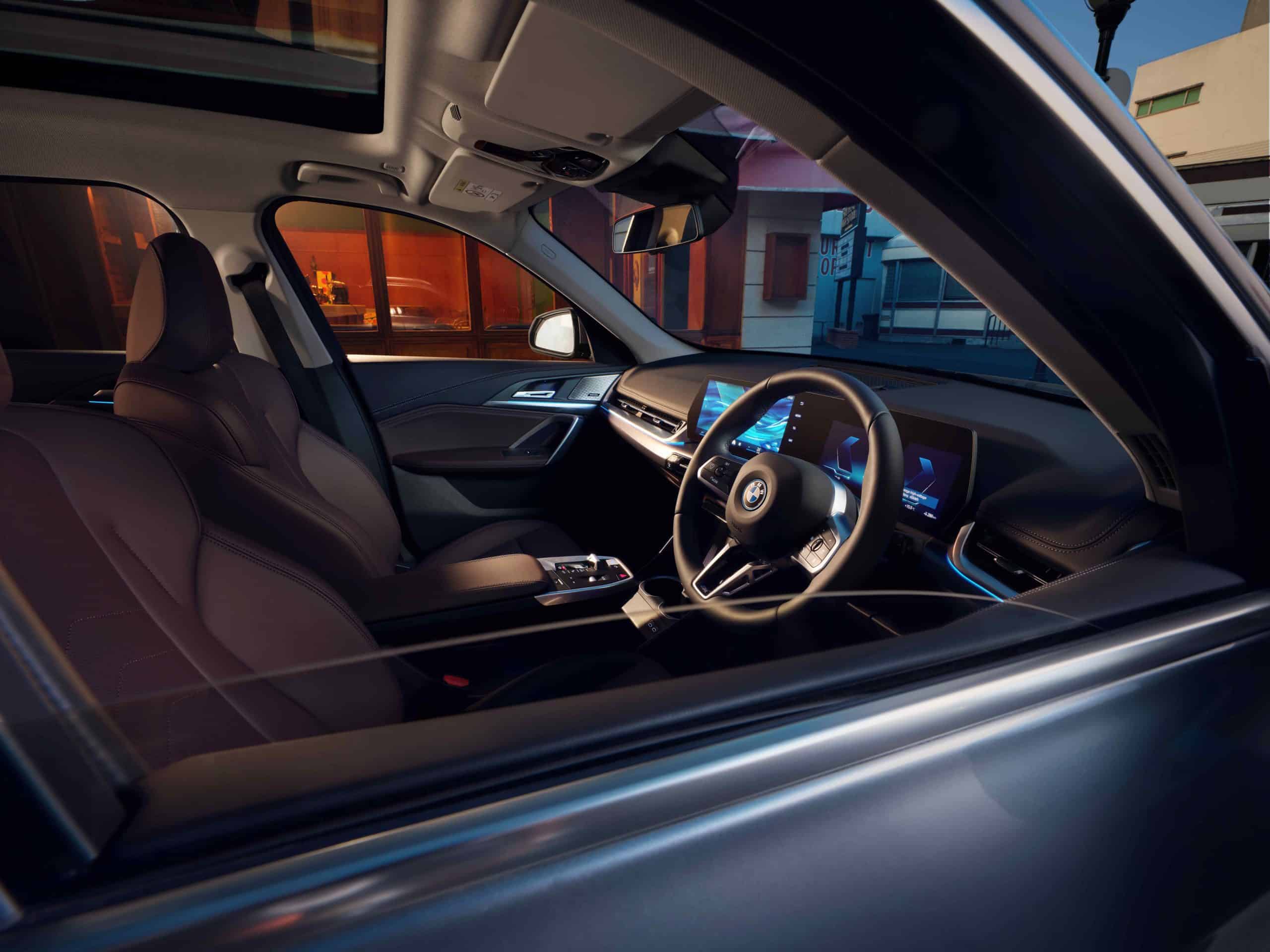 That front-mounted electric motor is good for 204 hp and an instant torque of 250 Nm (184 lb-ft). BMW India is selling the long-wheelbase iX1 with an M Sport Package fitted as standard. You get 18-inch M wheels without paying extra, and buyers get to choose from the following body colors: Mineral White, Carbon Black, Portimao Blue, Sparkling Copper Grey, or Skyscraper Grey. Inside, the cabin has perforated vegan leather. Additionally, the iX1 gets the biggest panoramic sunroof in its class.