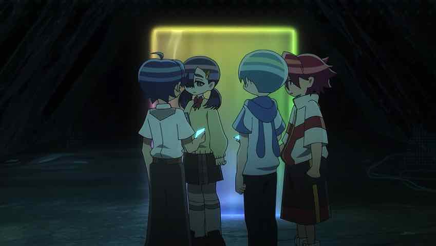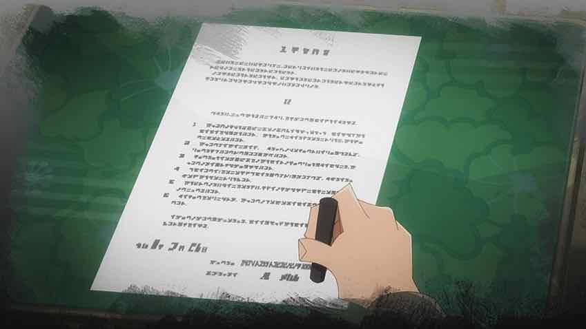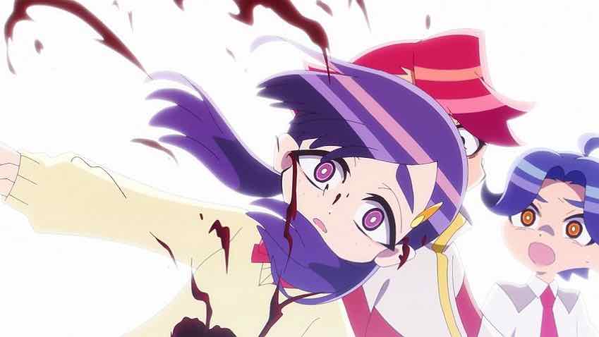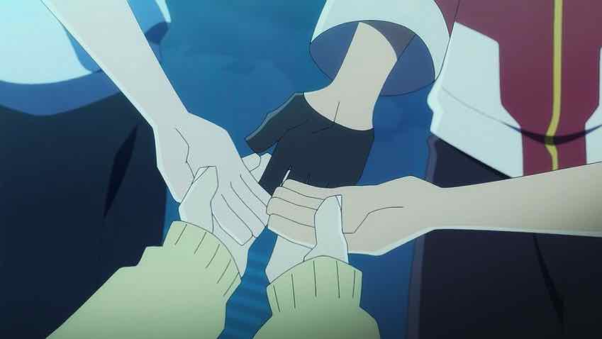 Bottom line – whether it’s decoded ancient tablets, a pre-modern supercomputer, or anything else, these are children drafted to fight for humanity’s survival. Sakko tells us some personal history here, and it explains why he’s so cynical now. He was pulled into a special program after taking a test as a small child. 30 other kids joined him – including Sayo. One by one they dropped off, some of them “broken”. Sakko views this as his parents having sold him off, rightly or wrongly. He and Sayo remained friends and wound up in a “deconstructing” club along with Momohime (and only the three of them).