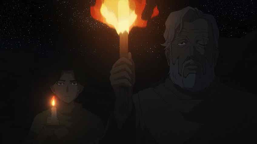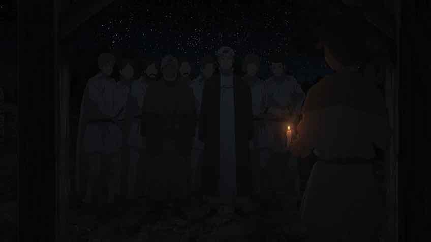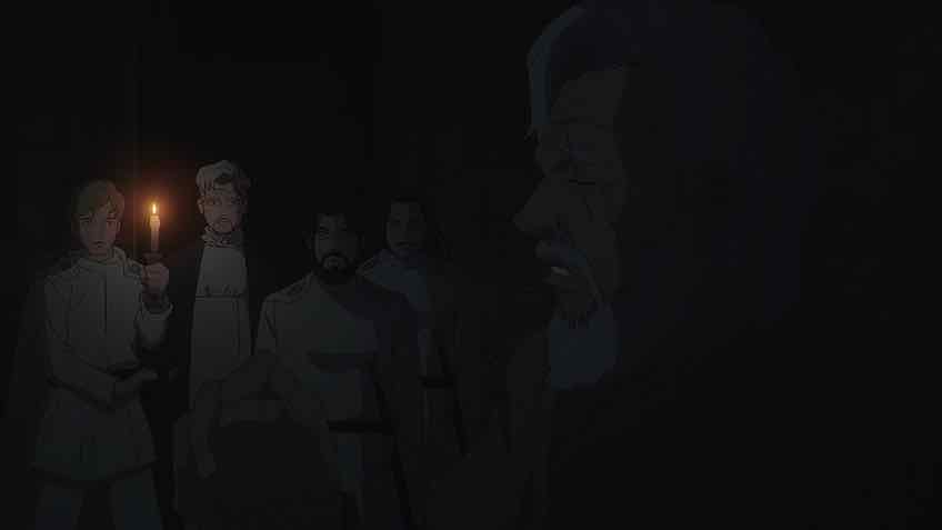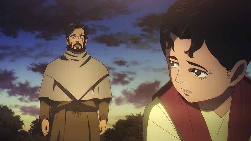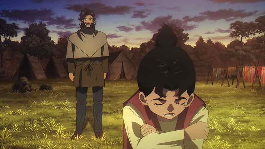 Indeed, things have just gotten sort of weird and random (and silly). We’re now following a nomadic tribe, which I originally thought might be Sami people, but they were never in what’s now Poland. It’s implied that this group survives partly by “plundering” but it’s also a farming and foraging community. It also runs as a strictly egalitarian commune, which doesn’t sit well with Draka (Shimabakuro Miyuri). She’s a (hilariously) modern-thinker who preaches Adam Smith capitalism to the village elder, who’s happy to rely on her innovative ideas but not her political philosophy.