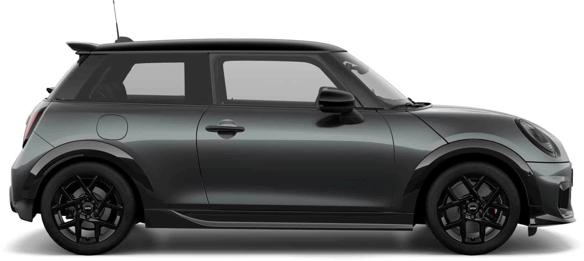 MINI intends to sell the feisty city car in either this Midnight Black paint or Legend Grey. Regardless of choice, the Cooper S with JCW Pack gets the side mirror caps and roof in black. Those 17-inch wheels also have a dark look, as does the vegan leather used inside the cabin. Despite the JCW branding, this is merely a cosmetic package since the car doesn’t have a more powerful engine.