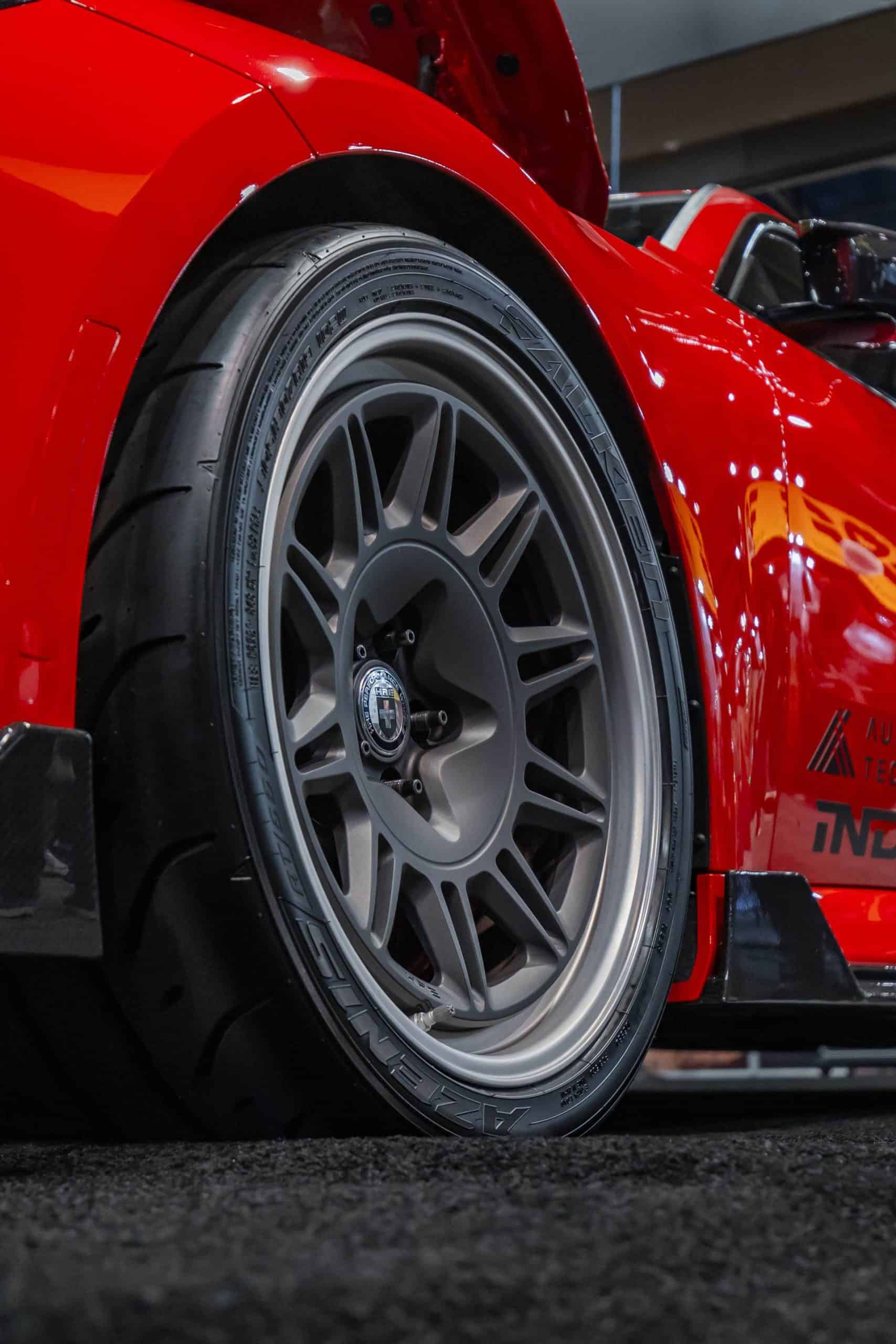 A nod to BMW’s heritage, HRE Wheels 528 (19×10.5) bring a retro-inspired design with a modern twist. They are painted with a Satin Charcoal with Frozen Polished Clear FMR barrels. Paired with Falken Azenis RT660 Tires (305/30ZR19), the square tire setup ensures balanced handling, enhanced grip, and improved tire wear. MotorsportHardware Wheel Studs ensure secure mounting under extreme driving conditions.