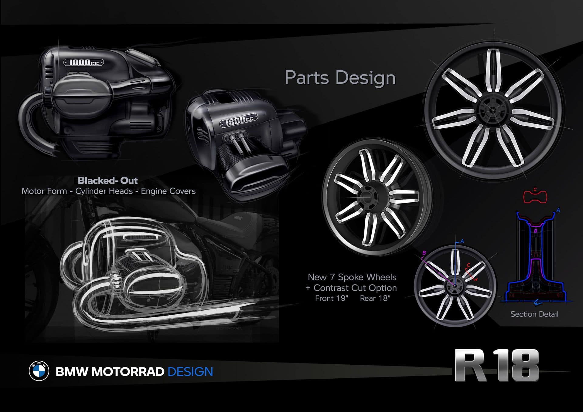 The standard R 18 receives a modernized design, including new front and rear fenders and an 18-inch rear wheel (up from 16 inches). A fresh seven double-spoke wheel design enhances its dynamic appeal, with optional Contrast Cut Wheels available for added customization. The fuel tank now seamlessly integrates with the rear fender, giving the bike a cohesive, sculptural appearance.