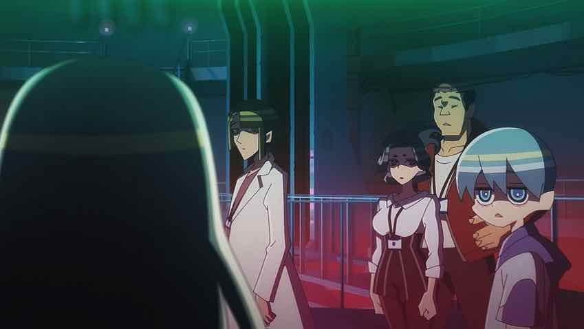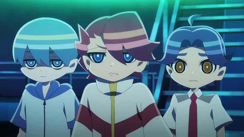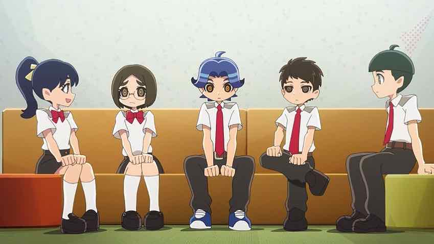 As sharp-eyed LiA commenter Envyus pointed out after Episode 2, all of the Elements kids had a stat screen showing what emotion they’re missing. With Sakko it’s fear. With Rimiya it’s empathy, with Toshi curiosity. And with Sayo, self-love (or self-preservation). That’s why Rimiya observes that she almost seemed happy when she was saying “I don’t want to die” – because the gattai with the two boys finally filled in that gap in her emotional palette. It seems this lack of an emotion is a prerequisite for being an Element, and that combining temporarily makes the child feel what they’re missing. In that sense I could see this being very much an addictive process for them.