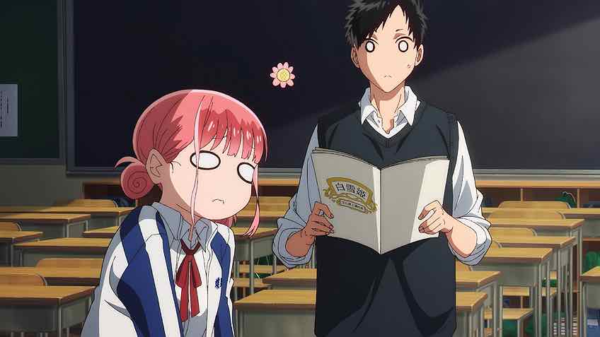 Two interesting peer meetings happen here. During her exchange with Haryuu he compliments Chinatsu as being quite stoic, and she notes that Taiki is too because he’s always there beside her first thing in the morning. Haryuu observes that Taiki is not so much stoic but committed. When Chi asks the difference he says “you’re a sadist and he’s a masochist”. Meanwhile Hina and Taiki have a very charged encounter when he volunteers to help her with the class play, which involves a kiss. Whatever Hina’s intentions are the result of the exchange is that he winds up even more uncertain and frustrated, which even without getting the kiss I think Hina would call a win.