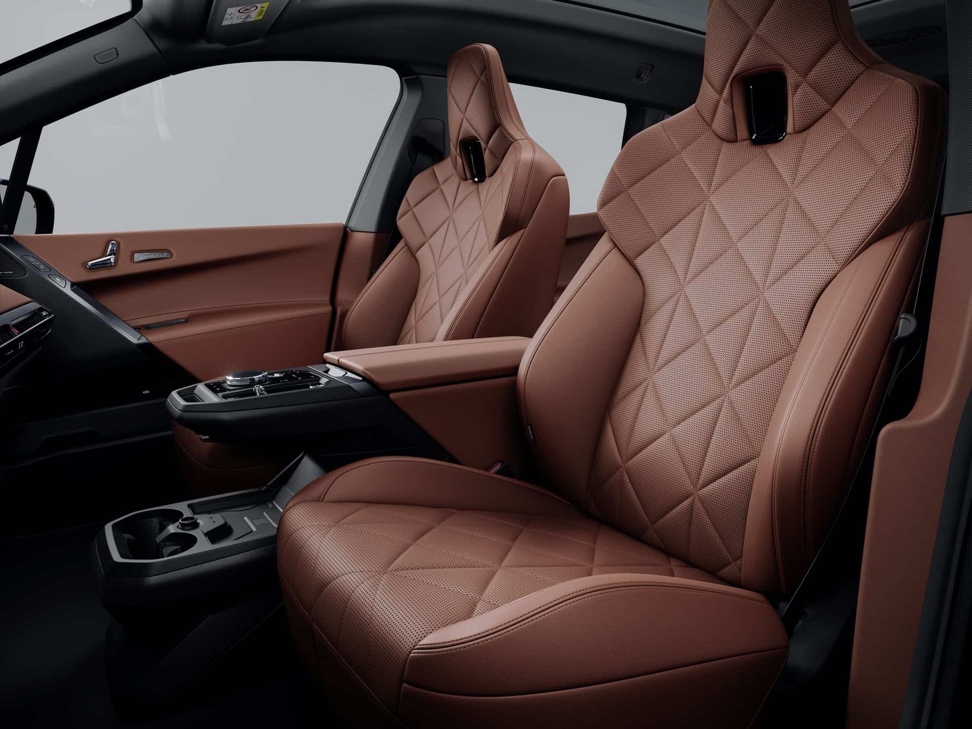 Another novelty introduced by the LCI is the availability of M Multi-Function Seats, which are standard on the M Performance model and part of the M Sport Package on the other two iX models. For an additional cost, these massaging seats can also be ventilated (standard on the M70). BMW covers the seats in microfibre/Sensatec, but you can opt for Amido or Castanea natural leathers. There is also an option of Sensatec and wool fabric, but not all markets will get this upholstery.