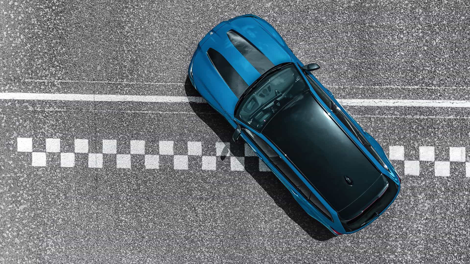Your choices for customizing the car are rather limited. Aside from the better brakes and several types of tires, you can choose from four body colors. Customers who want to fly under the radar will pick Sapphire Black or Frozen Solid White. The rest will go for either this stunning Laguna Seca Blue shade or British Racing Green. The roof is always black, and so is the rear spoiler, which gains a red stripe to further set the CS apart.